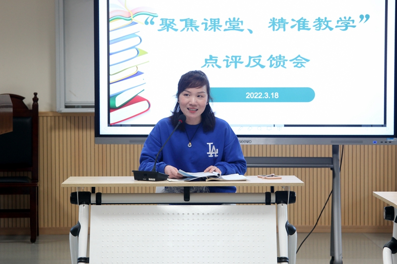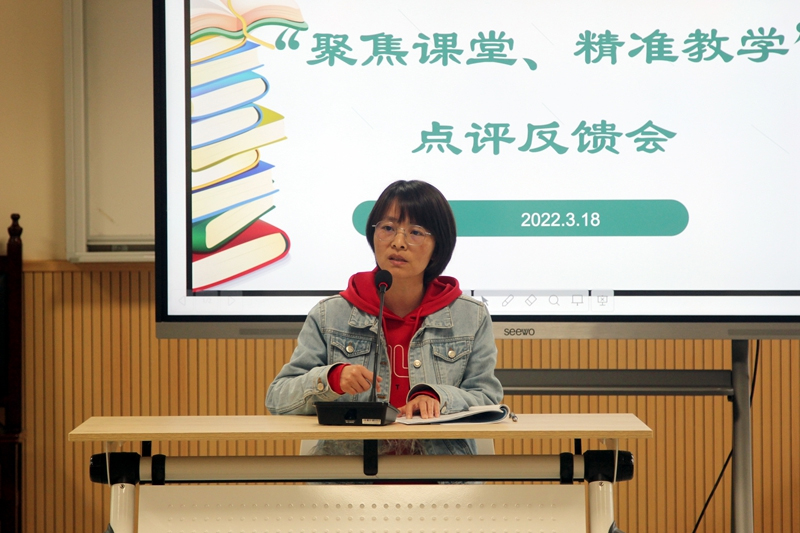 评课活动由研训处副主任李雅老师主持,先由上课老师自评,再由教研组长、备课组长和其他组员围绕“精准教学”展开他评。