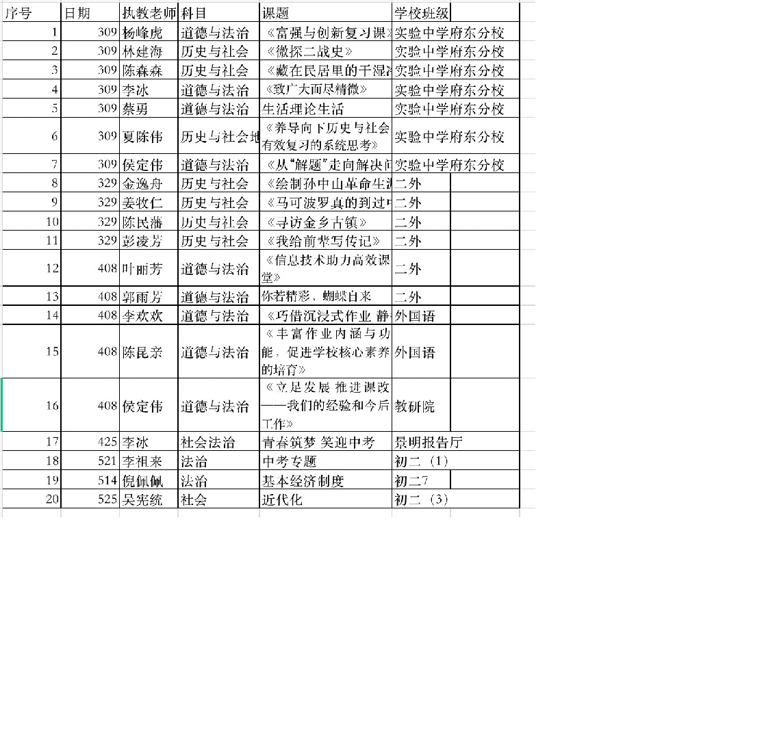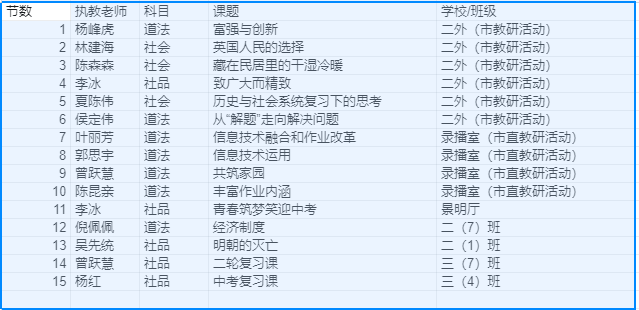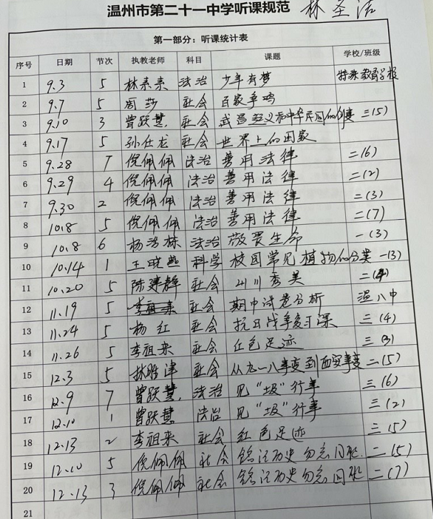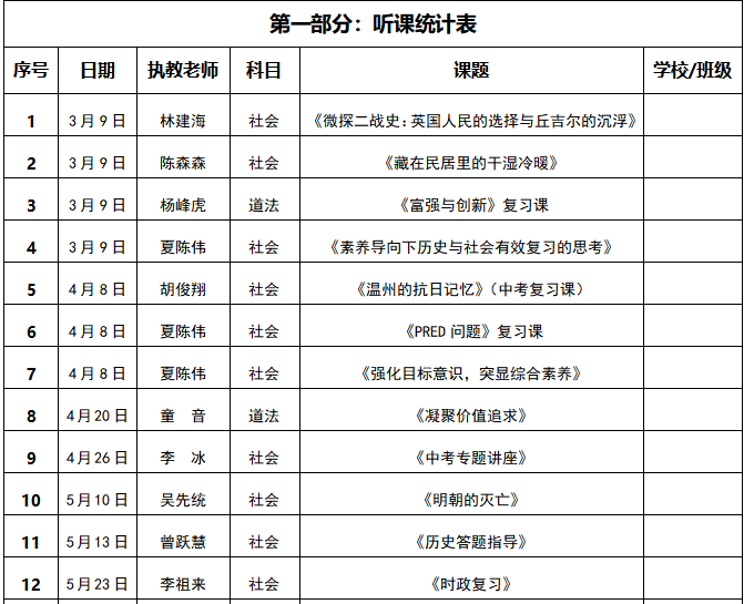 曾跃慧、杨红、李祖来、林圣洁听课记录统计